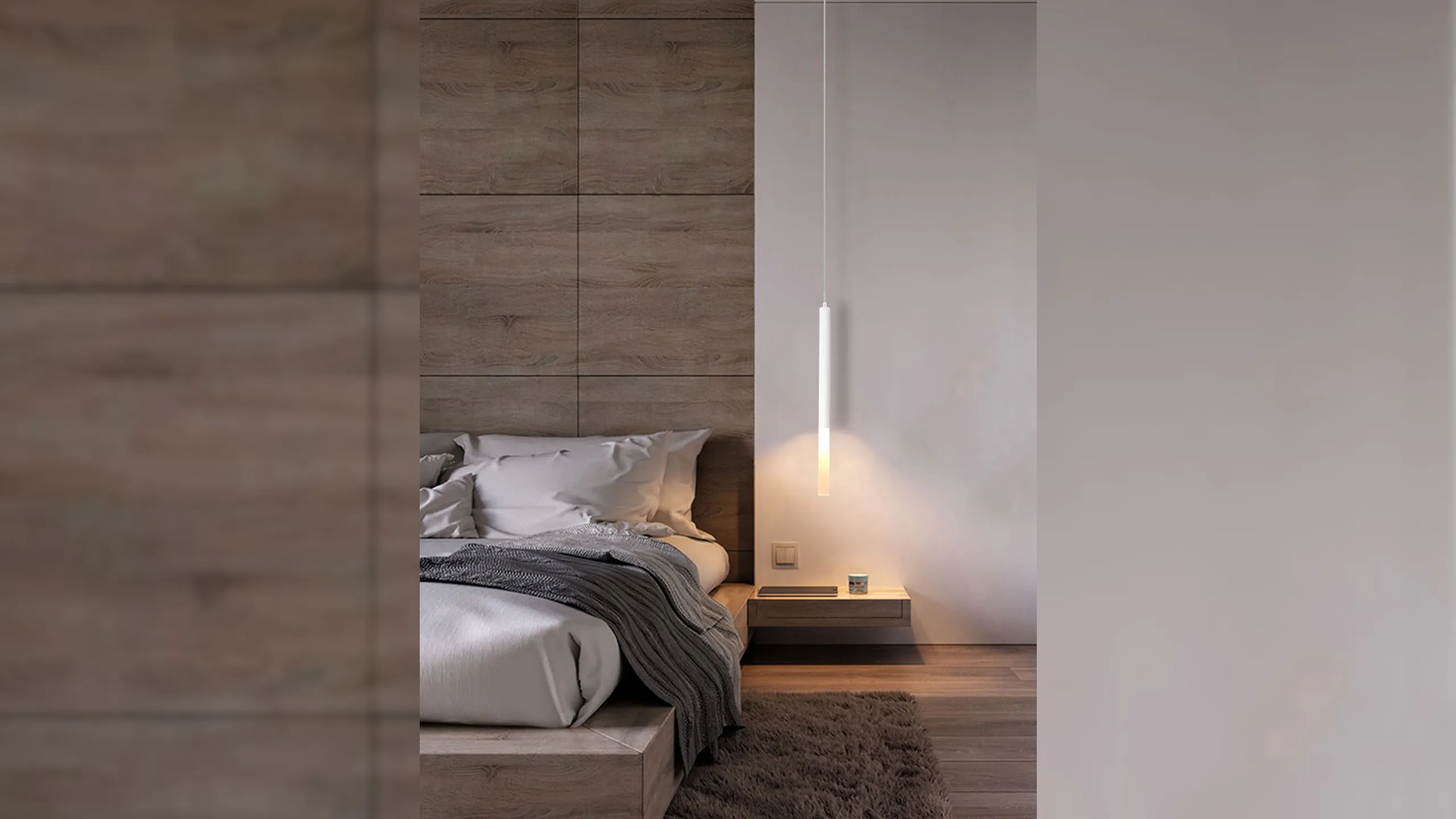Миниатюрный подвесной светильник, диаметр всего 3 см. Идеален для подсветки  отдельных предметов интерьера. Рассеивающий стержень наполнен пузырьками воздуха,  что добавляет декоративный эффект светильнику. Длина AL корпуса 400мм, стержня 100мм, потолочная чаша в комплекте