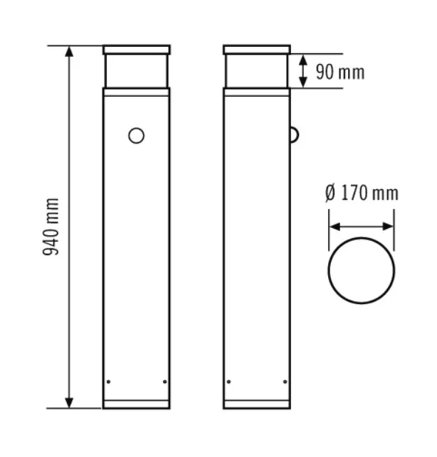 Примерные Высота/глубина 940 мм, Ø 170 мм
