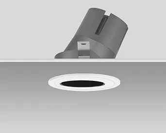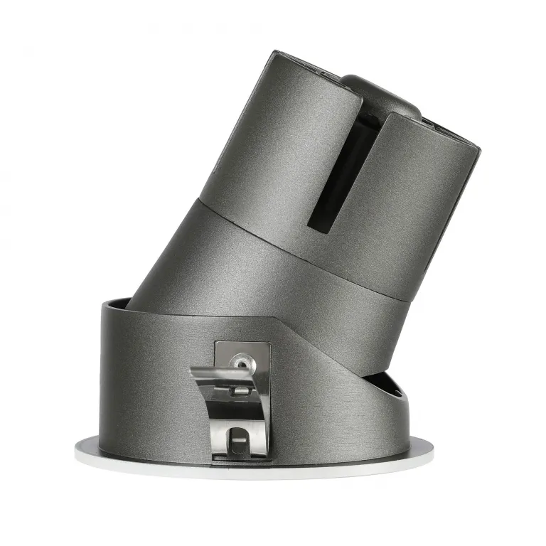 Регулируемый встраиваемый акцентный светодиодный светильник круглого сечения с функцией регулировки угла светового потока от 0° до 25°.
