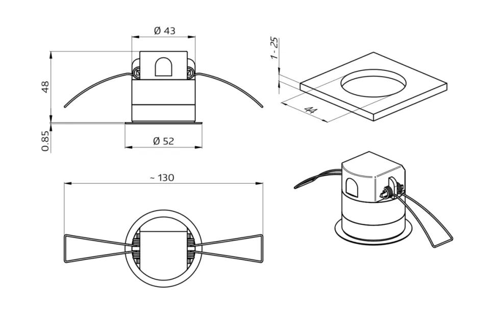 - Включает в себя жалюзи и зажимное кольцо для установки в светильники.