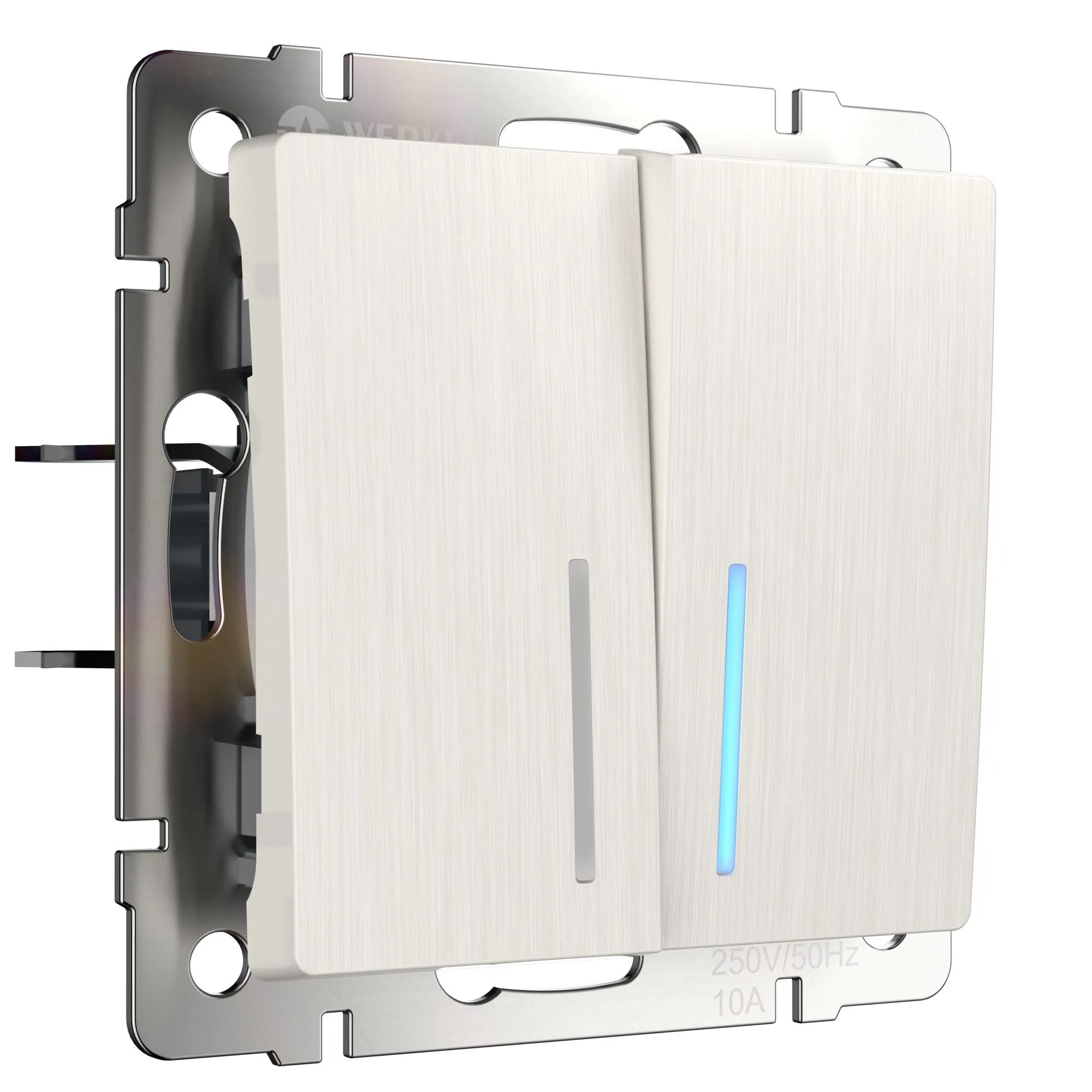 Выключатель двухклавишный проходной с подсветкой (перламутровый рифленый) W1122113