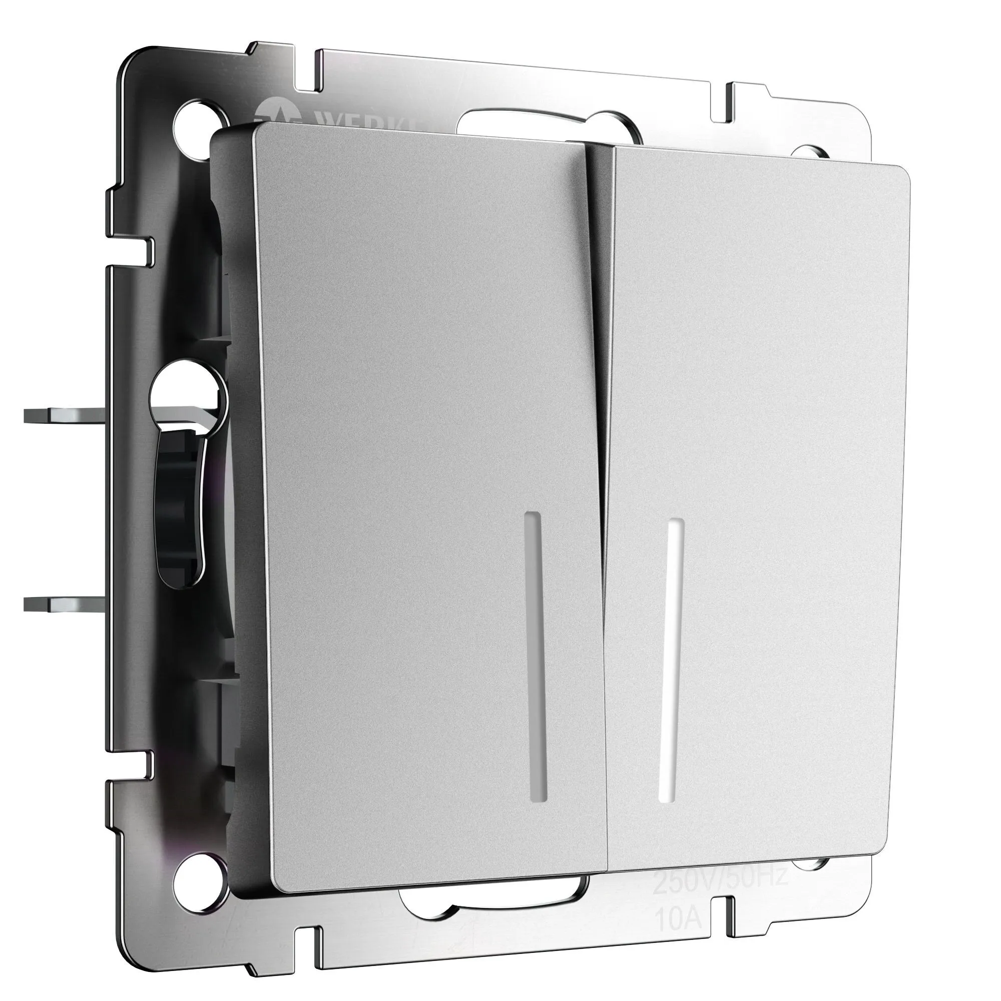 Выключатель двухклавишный проходной с подсветкой (серебряный матовый) W1122165